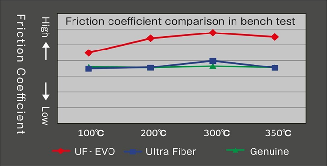 Achieves a high friction coefficient that overwhelms conventional facings from the normal use range of 100°C to the ultra-high temperature range.