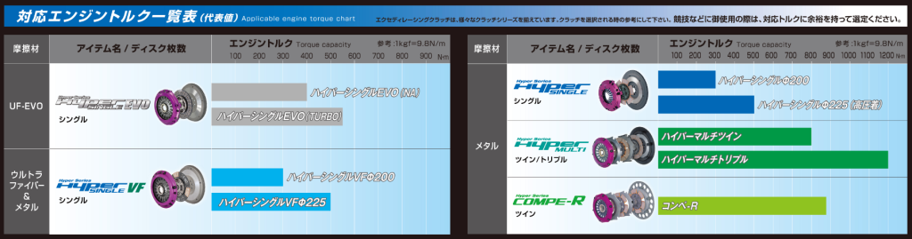 エクセディレーシングクラッチは、様々なクラッチシリーズを揃えています。クラッチを選択されるときの参考にしてください。