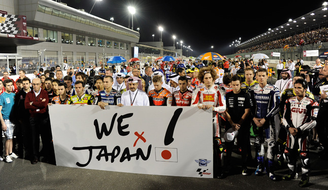 2011年3月20日に中東のカタールで行われた開幕戦は、東日本大震災へのお見舞いと追悼の意を込めて、全ライダーが復興を願いながら開催されました。また、日本メーカーの車両には復興を祈願するメッセージが貼られました。